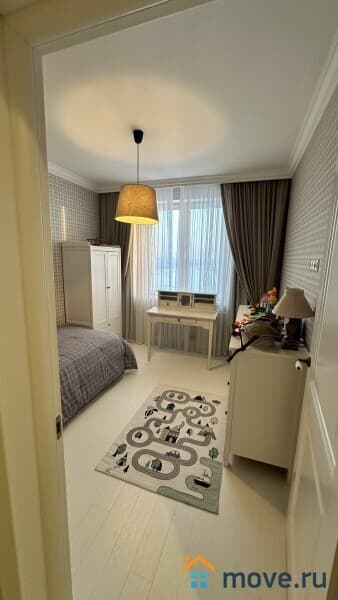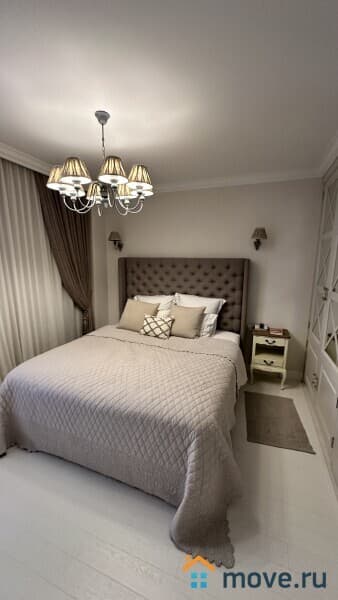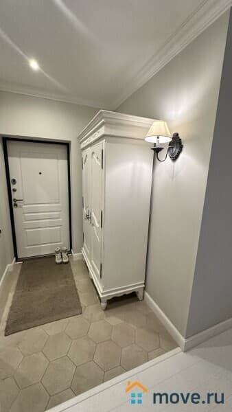 Сдаётся стильная и уютная трёхкомнатная квартира площадью 63 кв. м на 9 этаже современного монолитного дома 2016 года постройки. Общая жилая площадь — 47 кв. м, высота потолков — 2.75 метра. Окна выходят во двор, что обеспечивает тишину и комфорт. В доме 26 этажей, для вашего удобства есть пассажирский и грузовой лифты.