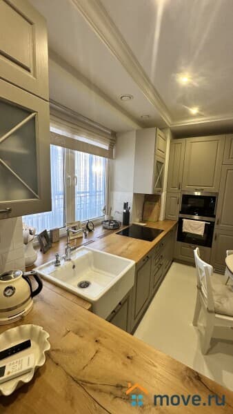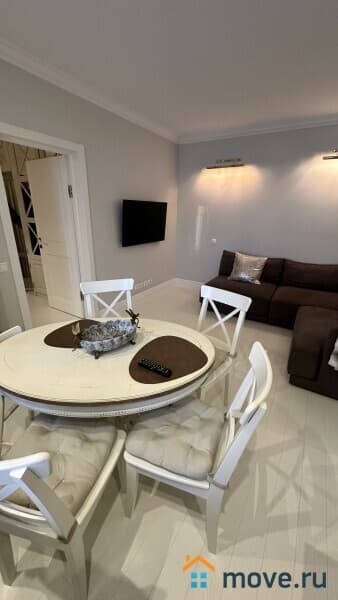 Квартира с дизайнерским ремонтом, в комнатах есть мебель, поэтому можно сразу заезжать и жить. На кухне установлена вся необходимая техника: холодильник, посудомоечная машина, телевизор. В ванной комнате — современная ванна, стиральная машина и кондиционер. Для хранения вещей есть лоджия. Связь и интернет проведены, мусоропровод в доме тоже есть.
