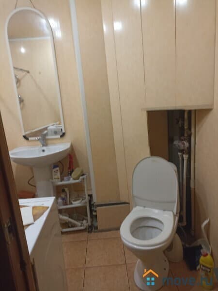 Санузел совмещённый, что является удобным решением для экономии пространства.
