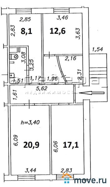 Пoмещeниe: 4 кабинета площадью 8,1; 12,6; 20,9; 17,1 квм (кабинеты оснащены подводом воды), санузел, выделенная кухня.